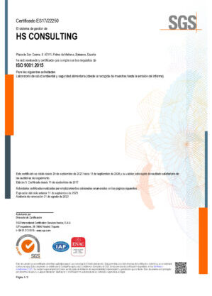En su afán por seguir mejorando la calidad de nuestros servicios, HS Consulting ha renovado su certificado de calidad ISO 9001:2015 en todos sus laboratorios HS LAB, ubicados en España, República Dominicana y México.